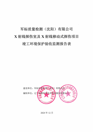 军标质量检测(沈阳)有限公司X射线探伤室及X射线移动式探伤项目竣工环境保护验收
