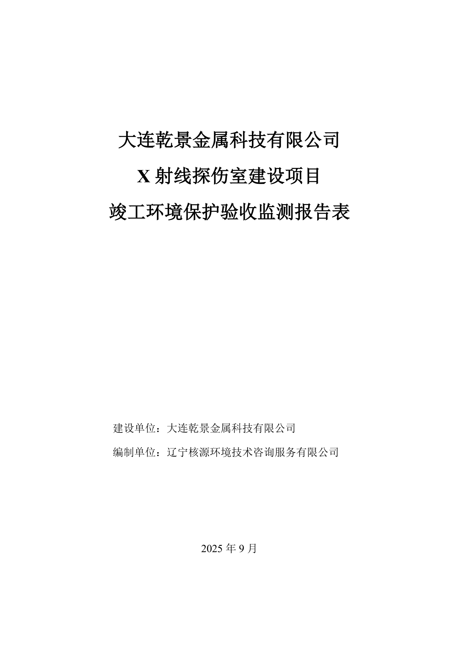 大连乾景金属科技有限公司X射线探伤室建设项目竣工环境保护验收