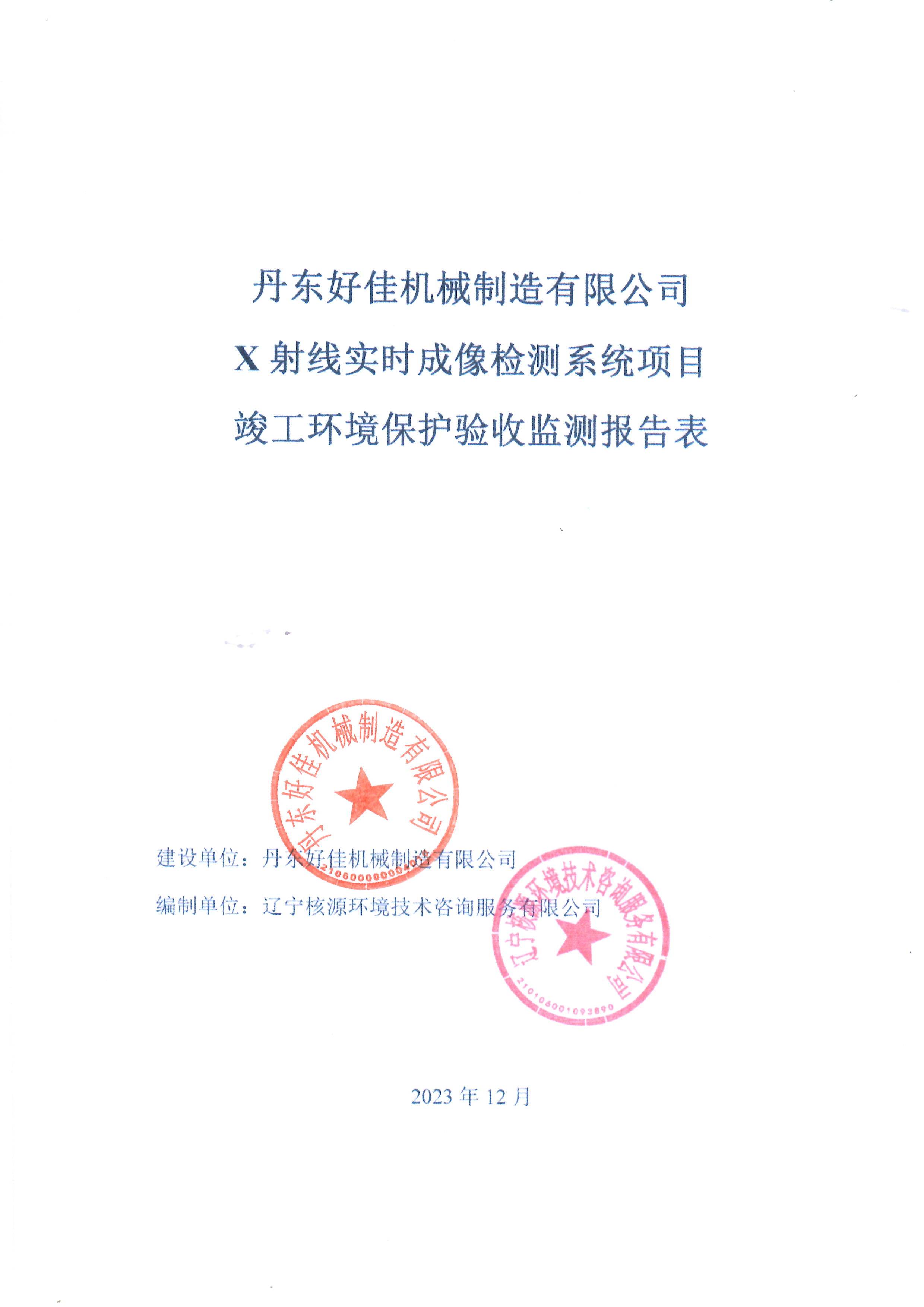丹东好佳机械制造有限公司X射线实时成像检测系统项目竣工环境保护验收