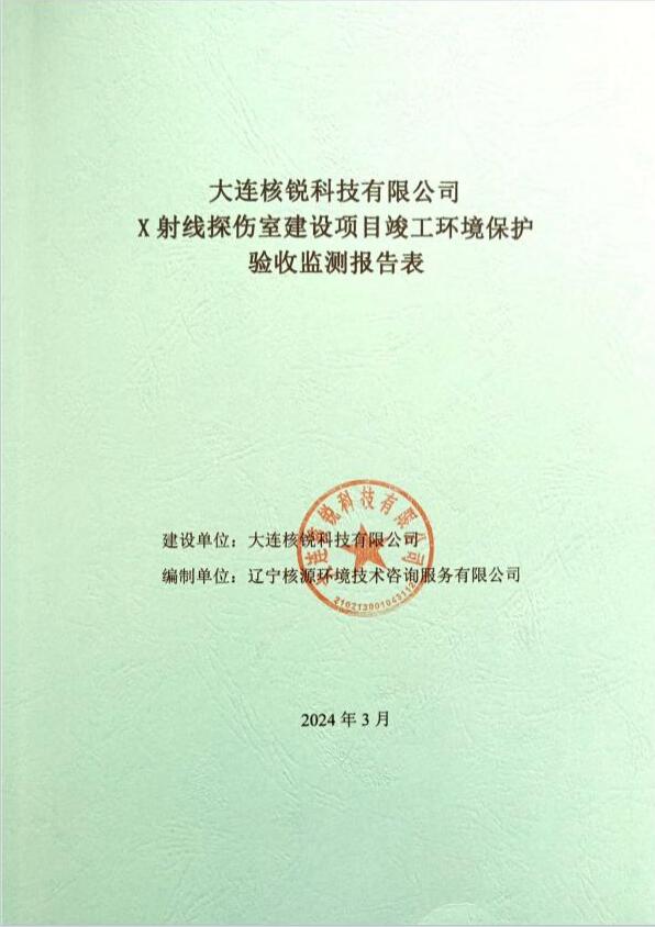 大连核锐科技有限公司X射线探伤室建设项目竣工环境保护验收