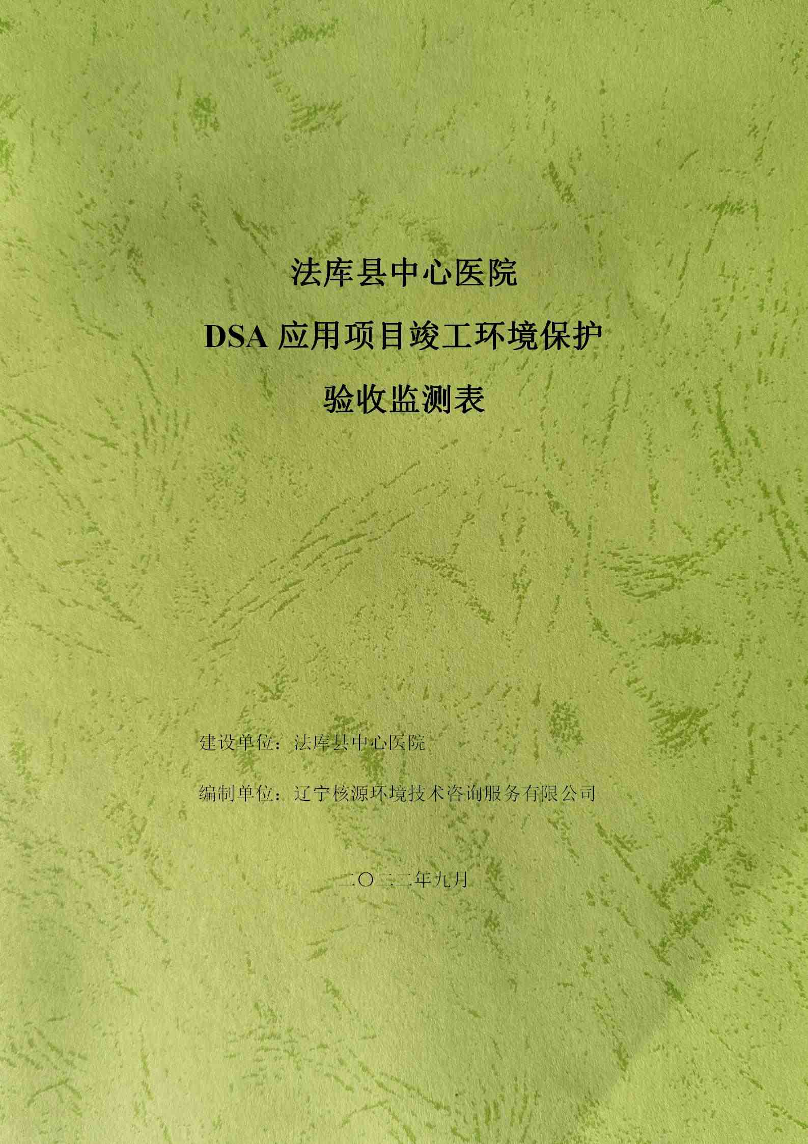 法库县中心医院DSA应用项目竣工环境保护验收公示